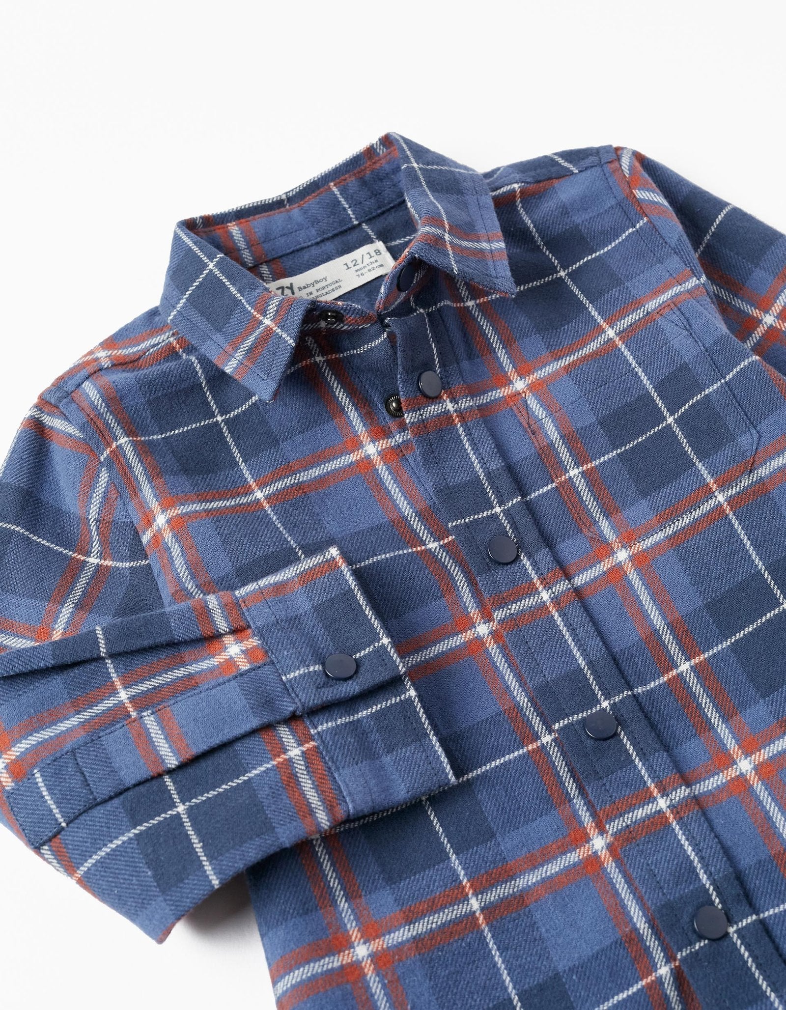 camisa azul a cuadros chedron, para bebé