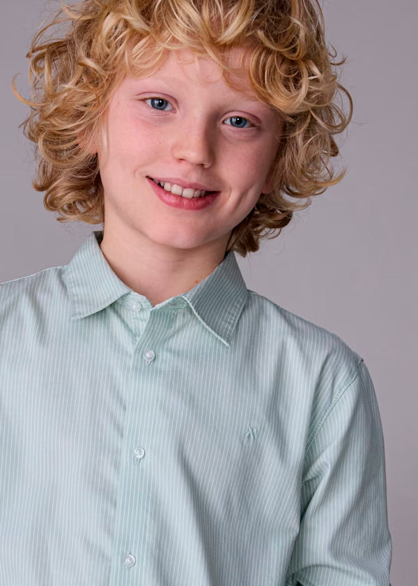 Camisa de manga larga para chico con puños abotonados. Cuello camisero. Línea de corte clásico. Cierre con botones en la parte delantera. Modelo perteneciente a nuestra colección Mayoral Basic, una prenda esencial en su armario para completar cualquier look.