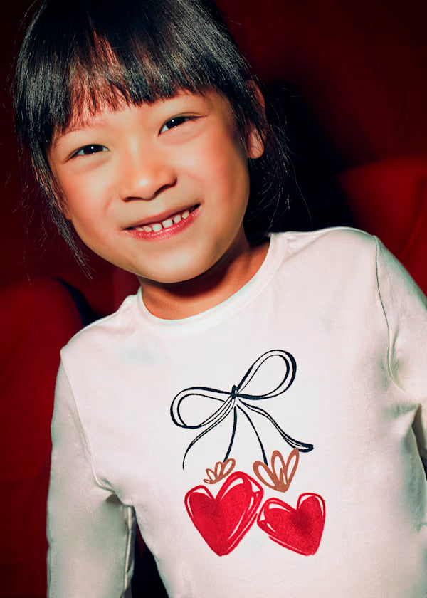 Camiseta de manga larga para niña. Tejido 100% algodón. Elementos de adorno: serigrafía (print).
