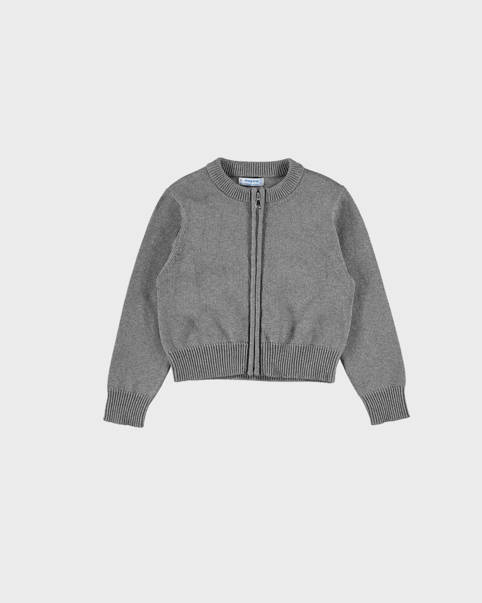 Suéter canguro diseño tricot color acero vig, cuello redondo con cierre de cremallera discreto.