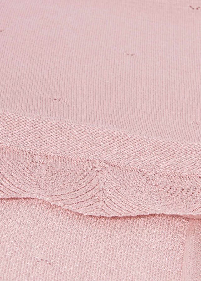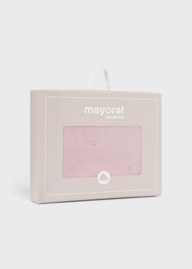 Cobija para recién nacidos de diseño envolvente en punto suave que ofrece confort al bebé en sus momentos de descanso. Elementos de adorno: motivos calados, holan decorativo. Este artículo se presenta en una caja de la línea Newborn ideal para regalar en ocasiones especiales.