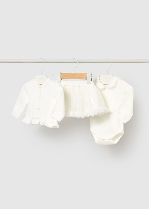 Original conjunto de tres piezas para recién nacida.