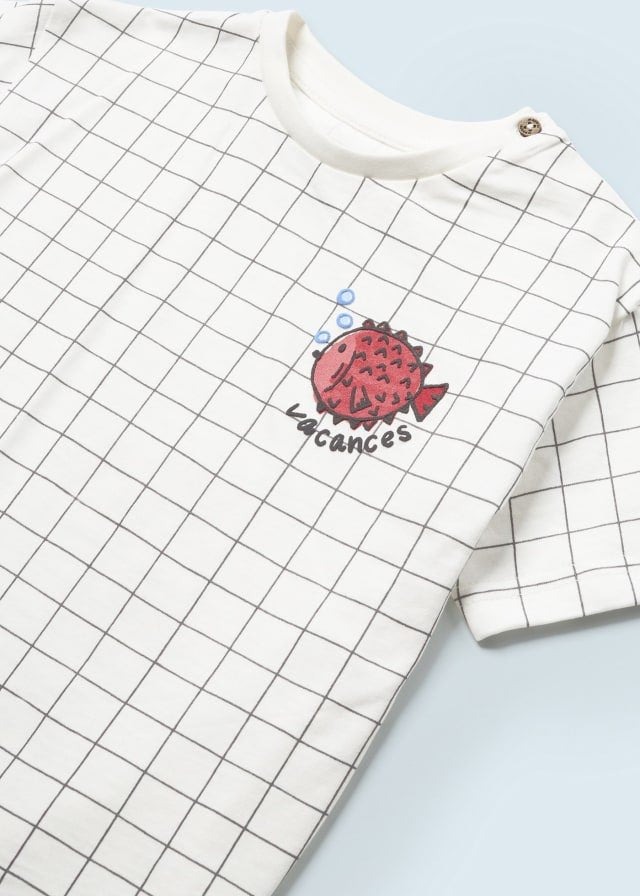Prenda ECOFRIEND 100% algodón sostenible. Playera de manga corta para bebé. Cuello redondo. Diseño estampado.