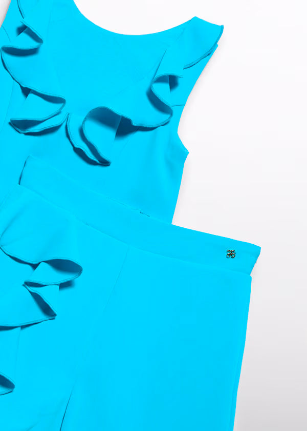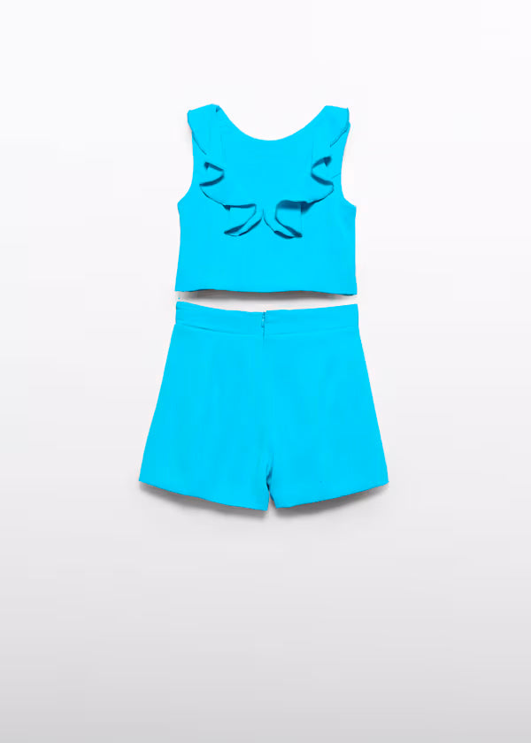 Conjunto Bermuda Crepe Volante color turquesa
