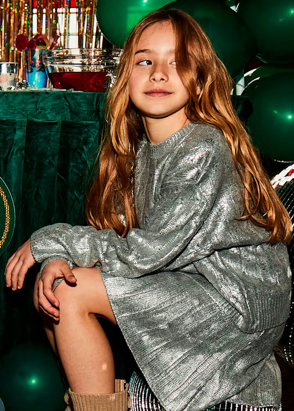 conjunto jersey y falda tricot plata, mayoral
