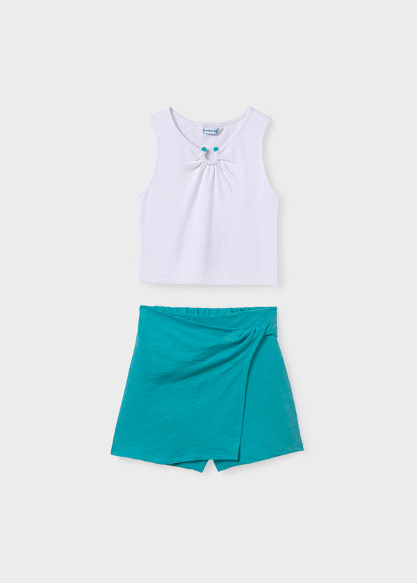Conjunto de falda pantalón y blusa canalé para niñas. Incluye una blusa fresca para combinar. Diseño cómodo y versátil para lucir a la moda en cualquier ocasión. Perfecto para días de verano y actividades al aire libre. ¡Ideal para las fashionistas más pequeñas!