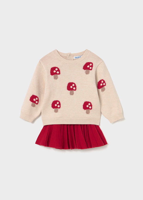 Contiene poliéster reciclado. Conjunto de jersey y falda combinados para bebé.