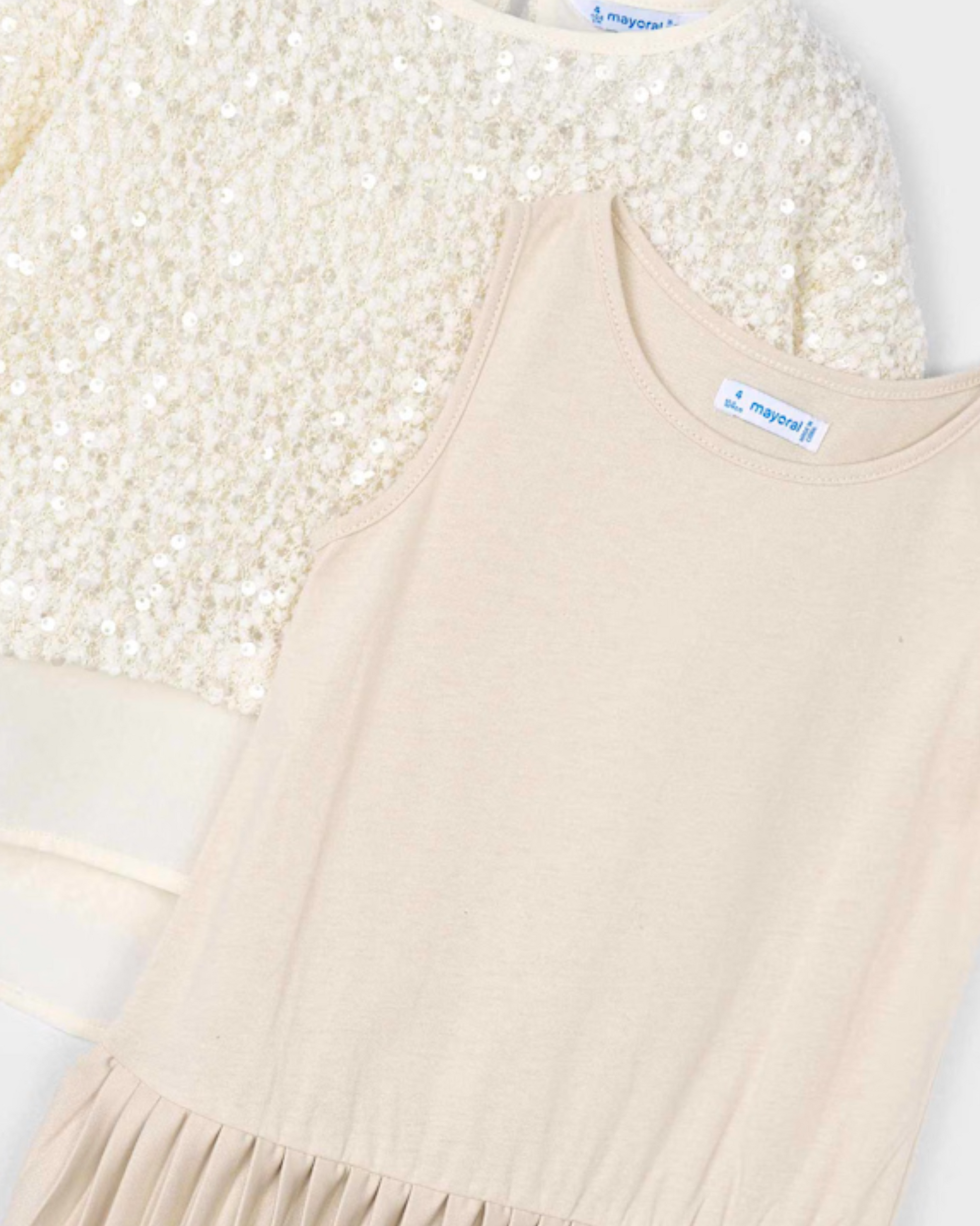 Vestido combinado lentejuelas color arena