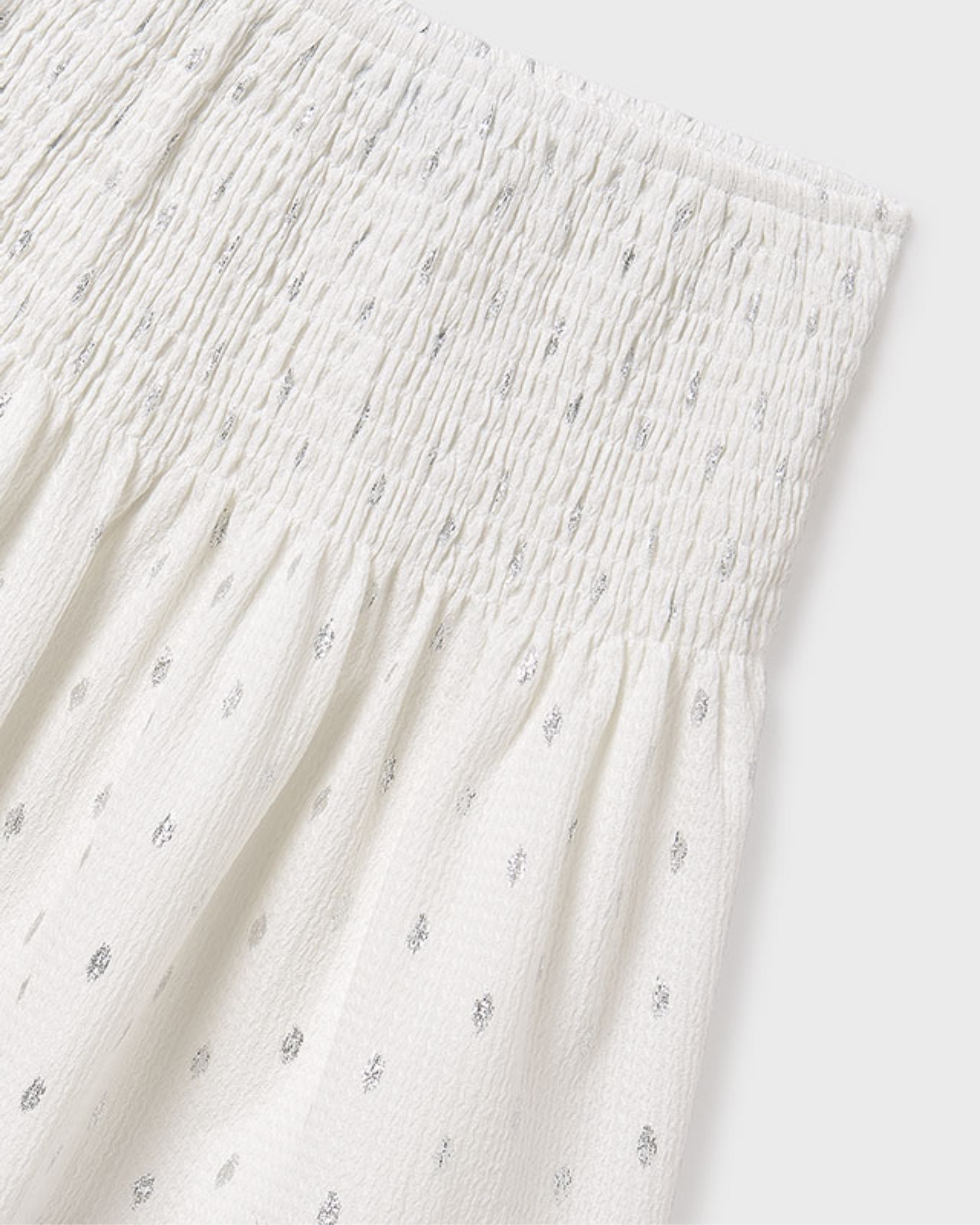 ¡Prepárate para deslumbrar con este conjunto de falda y blusa en plata! Con un elegante diseño de moda mayoral para niñas, este conjunto es perfecto para cualquier ocasión. Llévalo con confianza y estilo, ¡serás la envidia de todos!