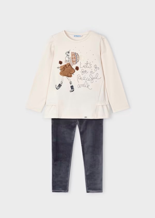 conjunto mayoral, leggins gris y blusa con estampado manga larga,  mayoral