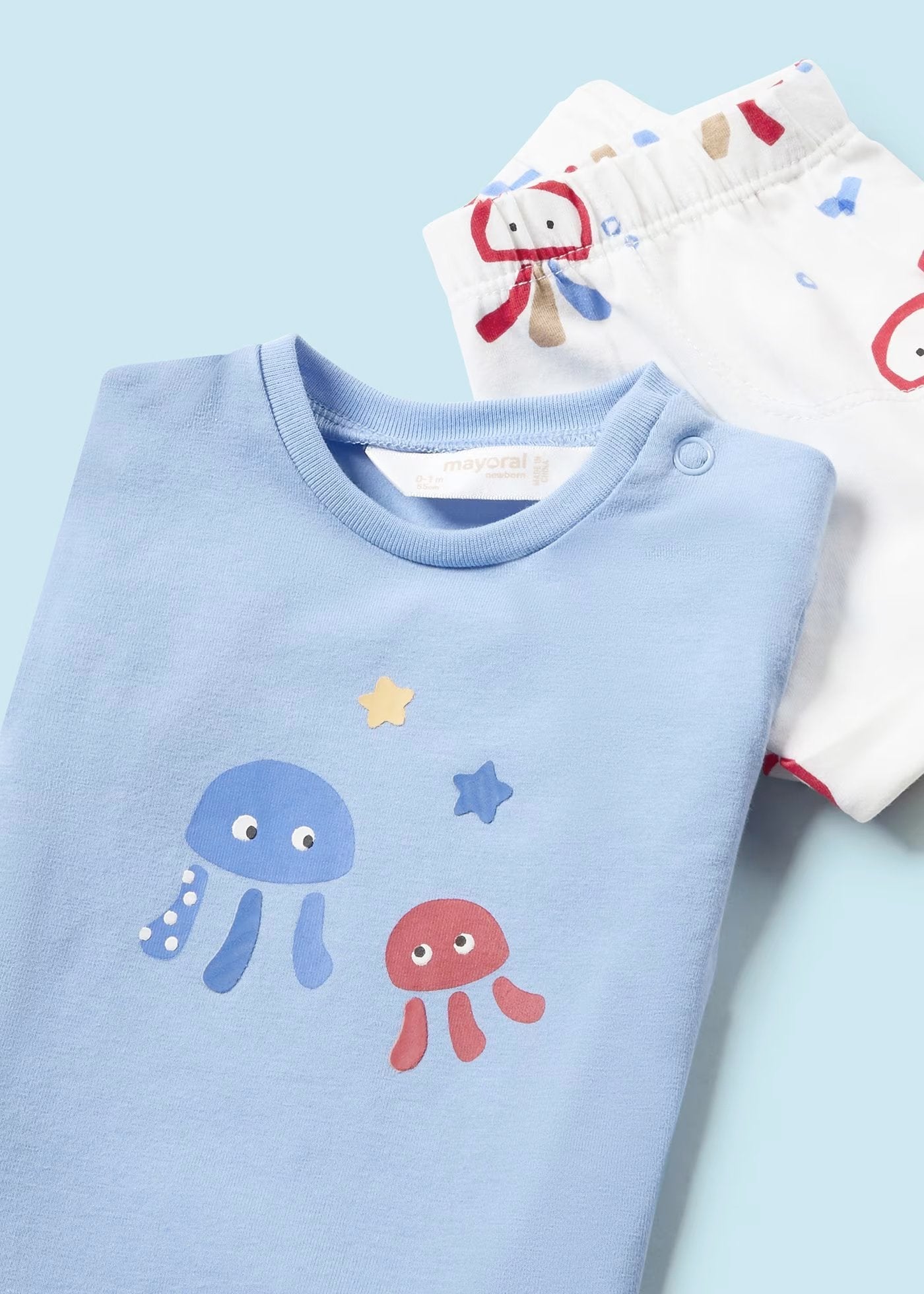 conjunto short y camiseta, azul y blanco print pulpos, para bebe, mayoral