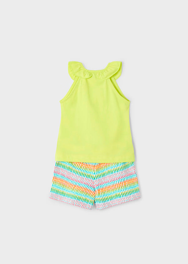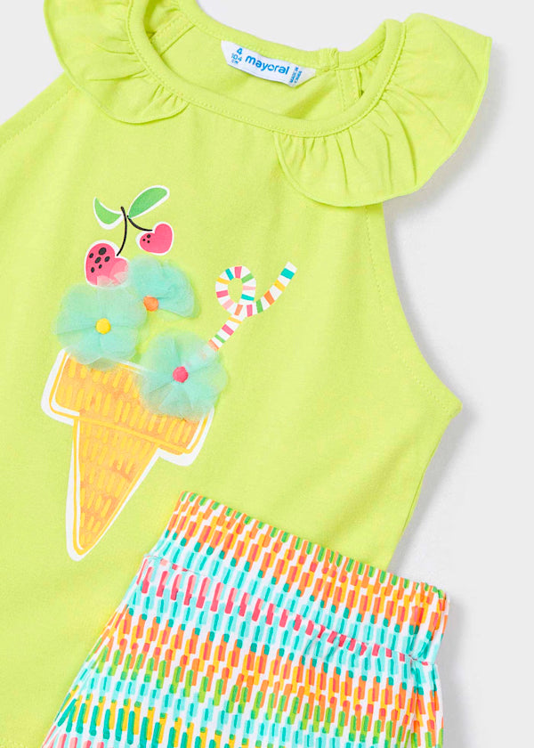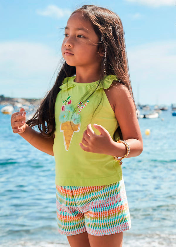 ¡Que refrescante! Conjunto de short y playera con un diseño de helado de limón perfecto para disfrutar en la playa durante esos días de calor. Ideal para niñas que aman jugar y divertirse bajo el sol. ¡Con este conjunto, ellas estarán listas para cualquier aventura en la playa!