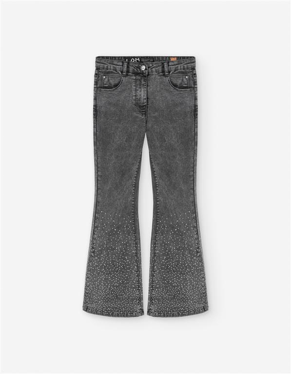 Conjunto sweater chenille gris obscuro y pantalon denim campanas niña, losan