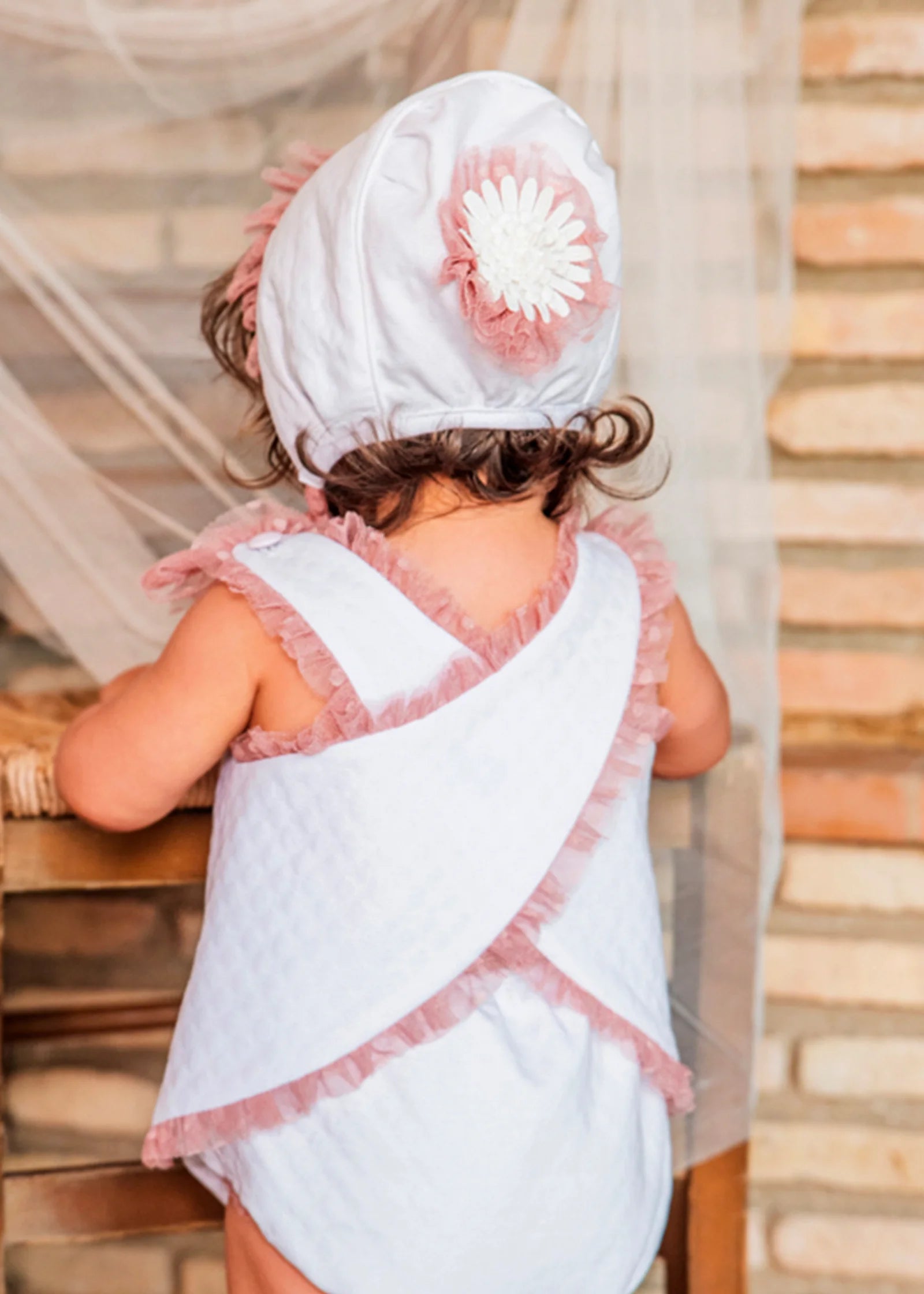 tallas 9 y 12 meses incluye capota, disponible en rosa y verde