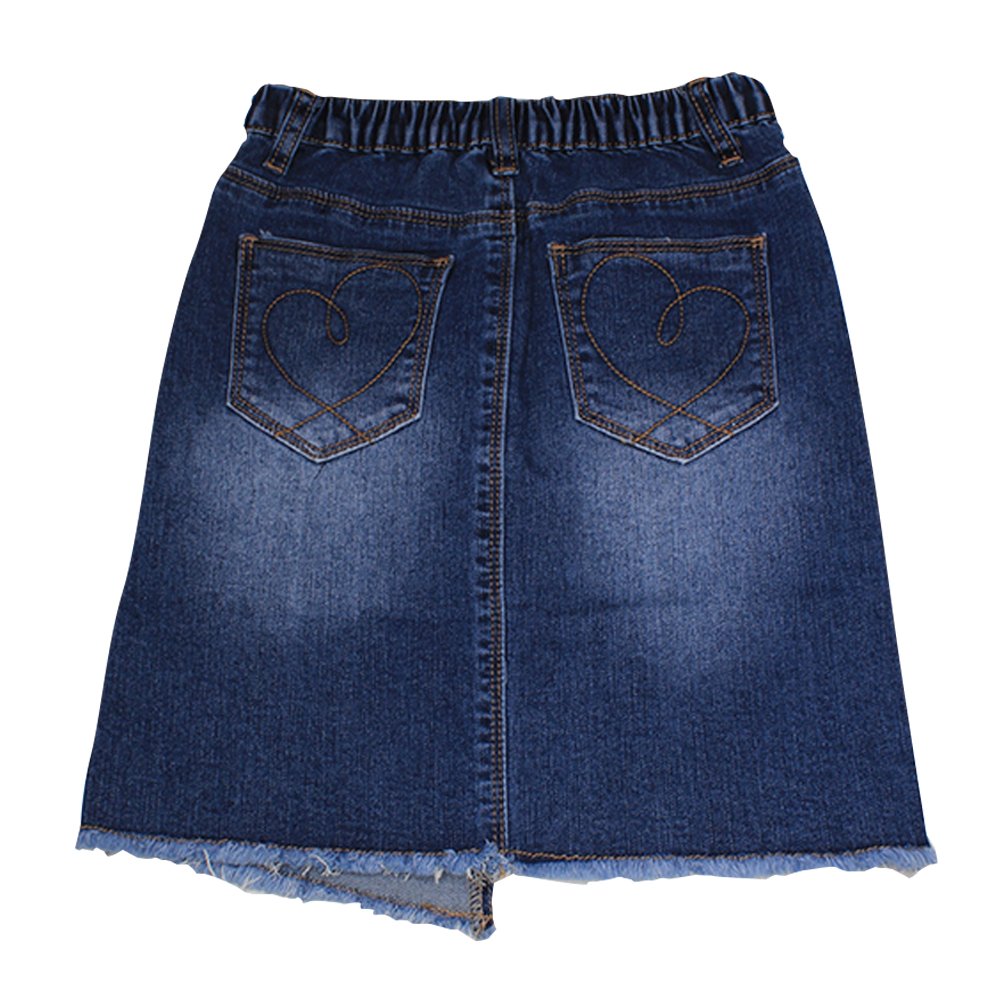 Falda de mezclilla con bolsas traseras con corazón bordado.