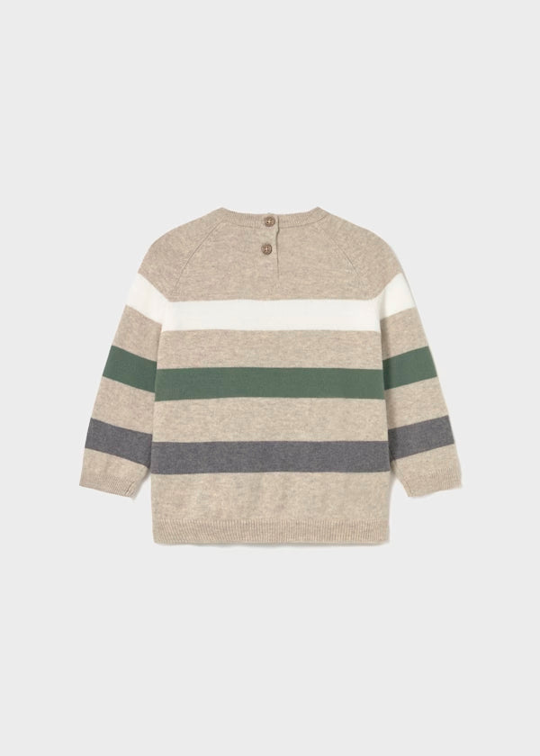 Jersey de manga larga para bebé. Cuello redondo. Cierre con botones en el cuello para facilitar el ajuste. Motivo de rayas.