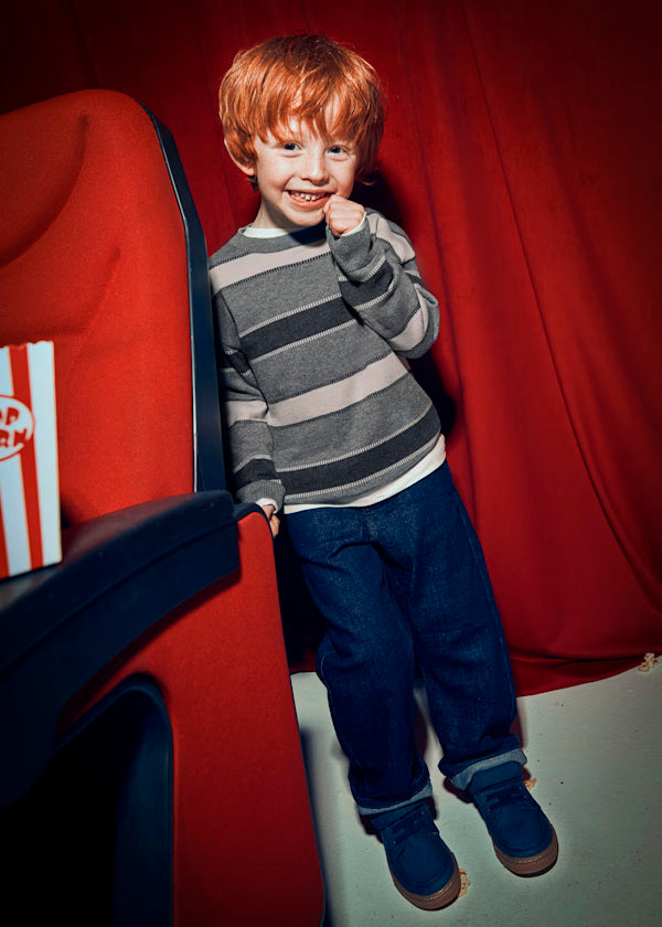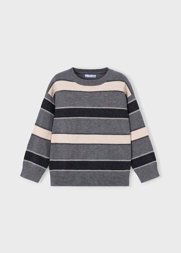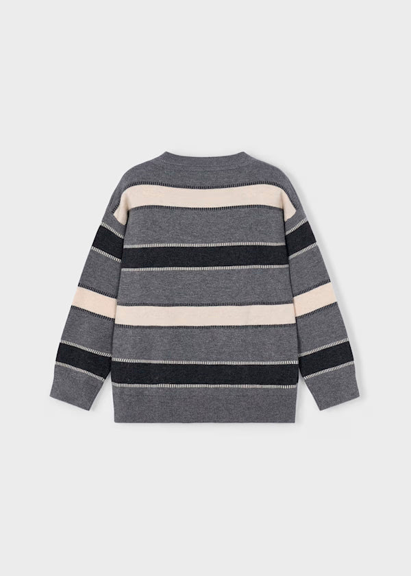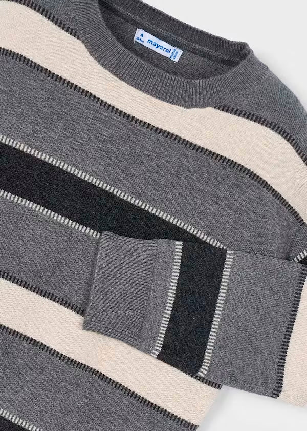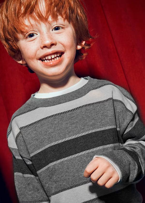 Contiene poliamida reciclada. Jersey de manga larga para niño. Cuello redondo. Tejido de punto tricotosa de tacto suave y agradable. Motivo de rayas