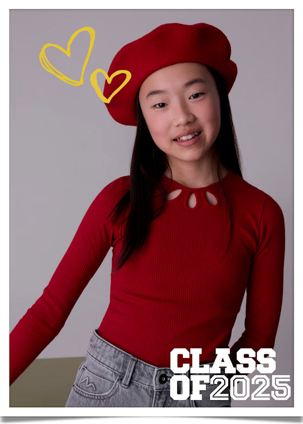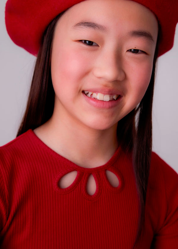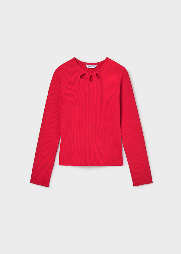 Camiseta de manga larga para chica. Cuello redondo. Tejido de punto canalé. Elementos de adorno: aberturas de adorno.