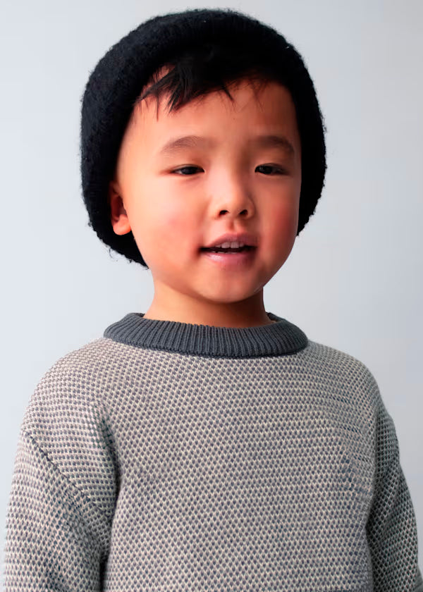 Contiene poliamida reciclada. Jersey de manga larga para niño. Cuello redondo en distinto color.