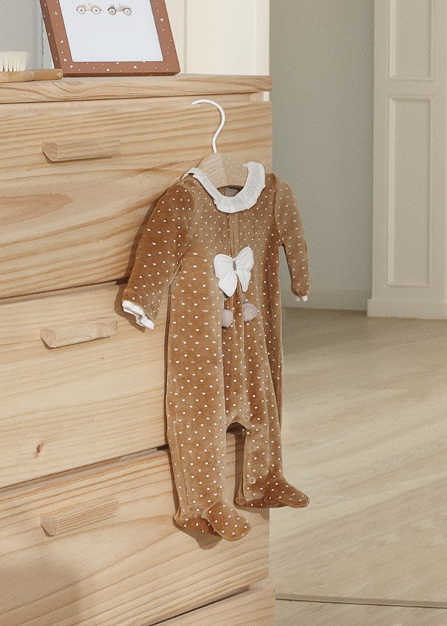 Pijama manga larga para recién nacido. Cierre con botones en la espalda para facilitar la puesta de la prenda.
