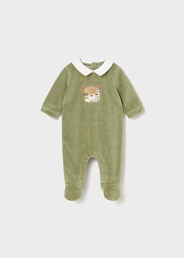 Pelele terciopelo de manga larga color verde, mayoral