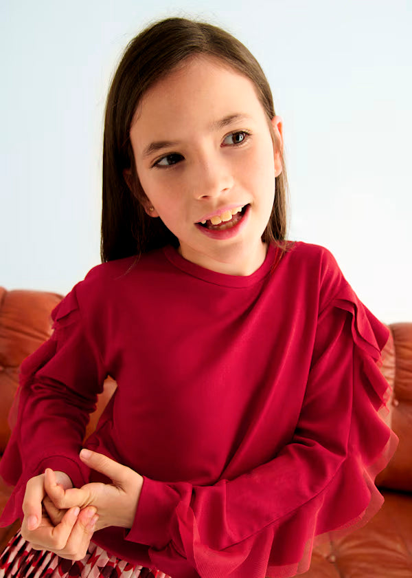 Conjunto jersey rojo con volantes y falda plisada estampado ABEL & LULA