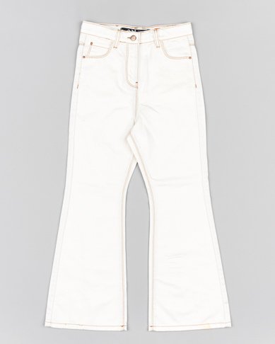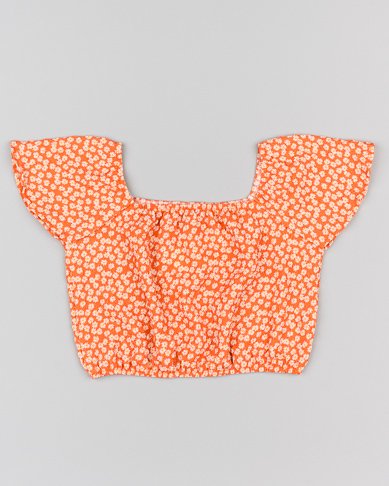 set 2 piezas blusa flores naranjas y pantalón campana color crudo