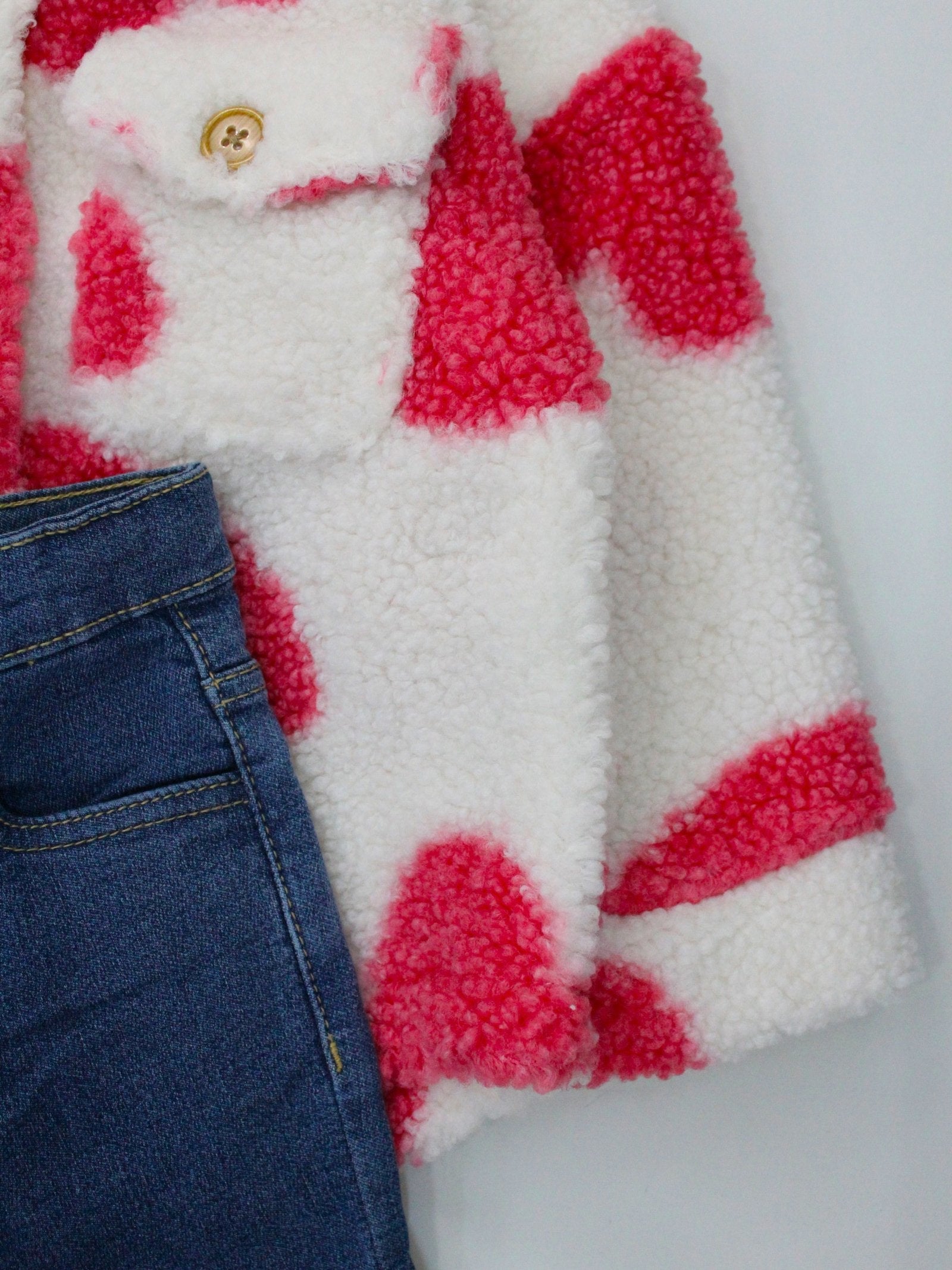 set sobrecamisa corazones y pantalón denim light, con corazones en las rodillas