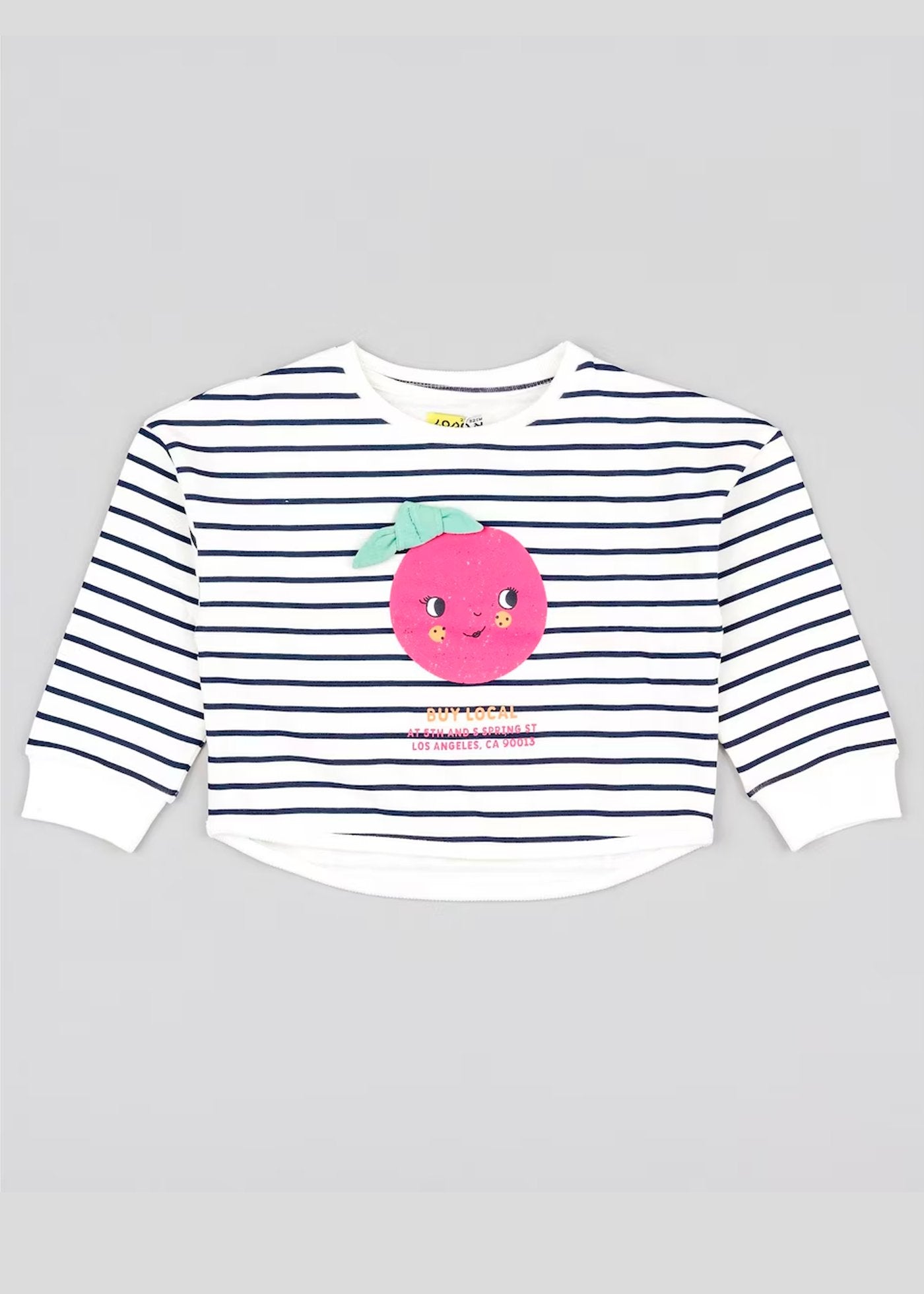 set suéter ligero a rayas print naranja rosa con leggins azul marino, marca losan