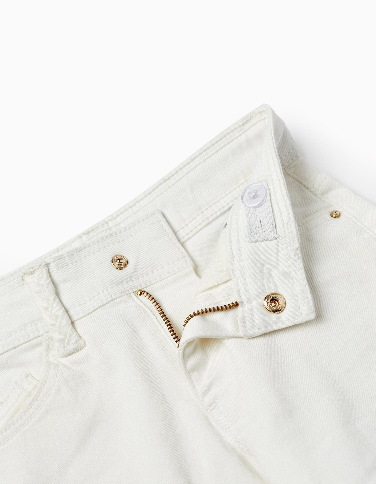 short mezclilla blanca, cierre y bolsas traseras, MARCA ZIPPY