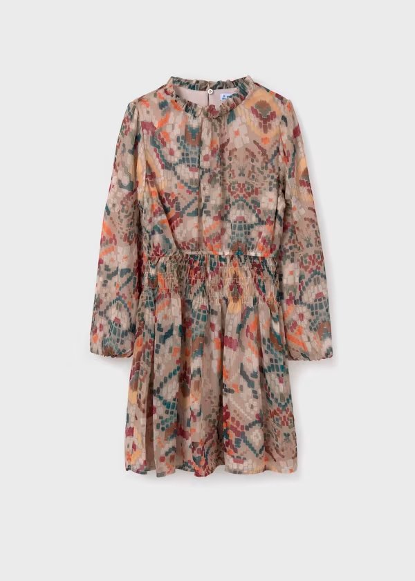 vestido patrones sepia, con smoke en cintura