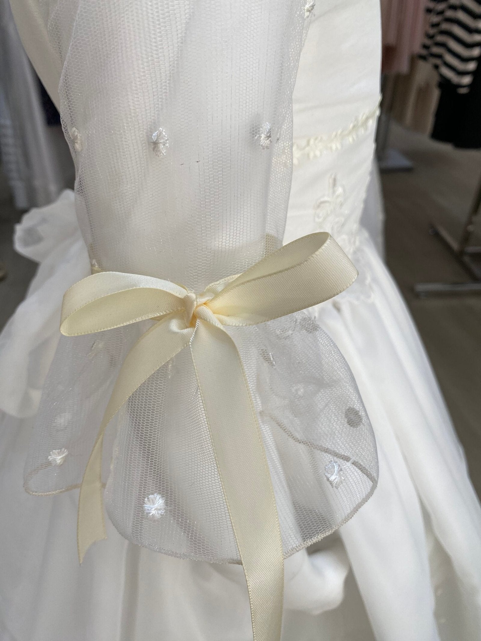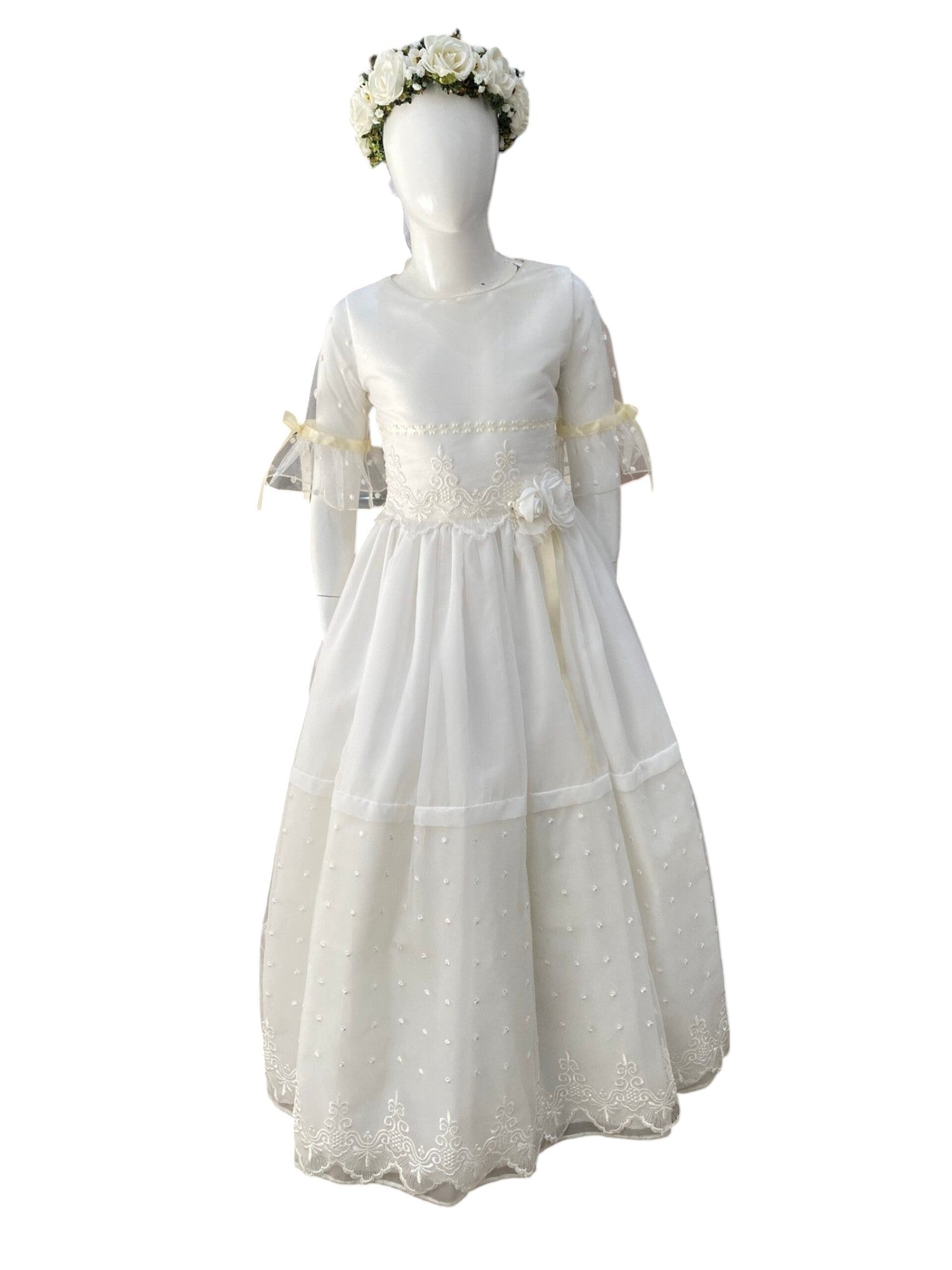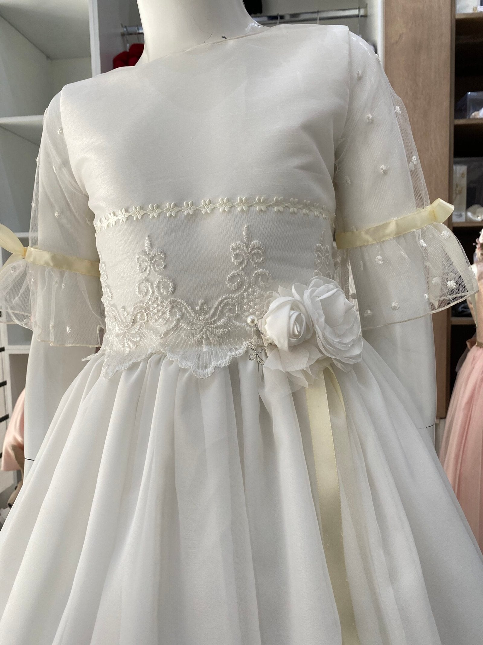 vestido primera comunión color perla con manga campana tres cuartos, talla 10